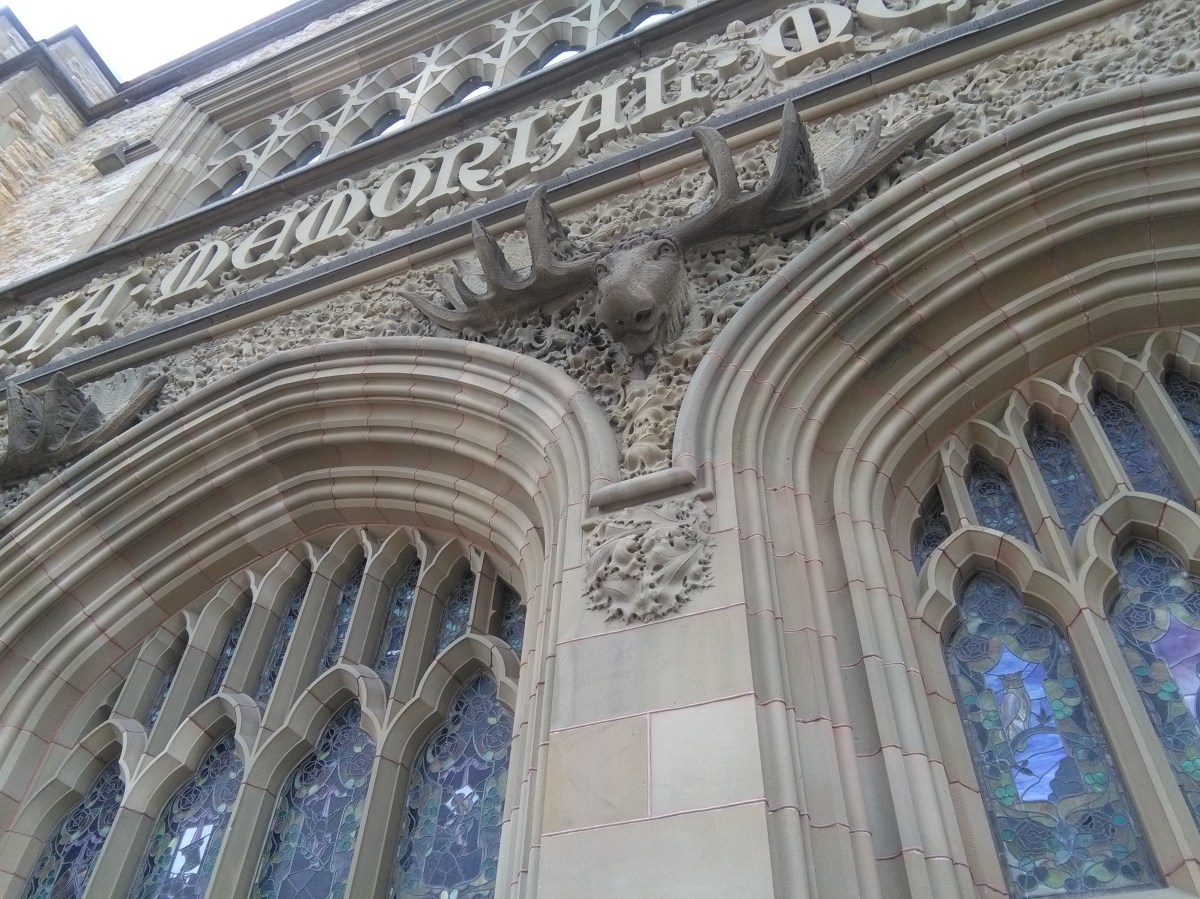 img_20160828_113244 November 10, 2016 by Linda G. Hill Leave a comment ← Previous Image Next Image → A moose above the front door. Note the detail in the stone and the glass.