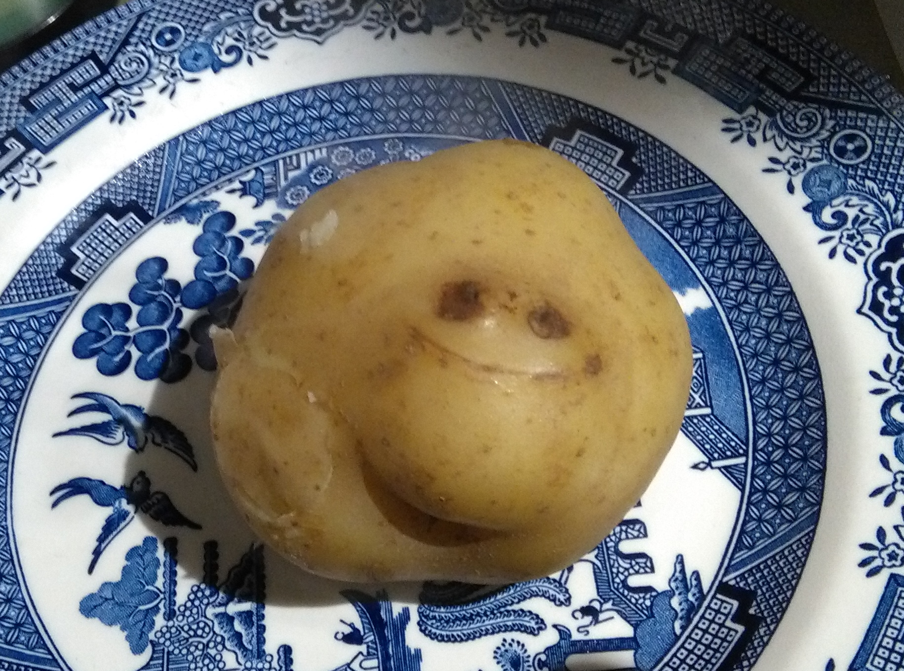 Looks like a happy bullfrog/ghost/potato. I’d have to eat around the edges first and save the face for last, like with birthday cake characters.