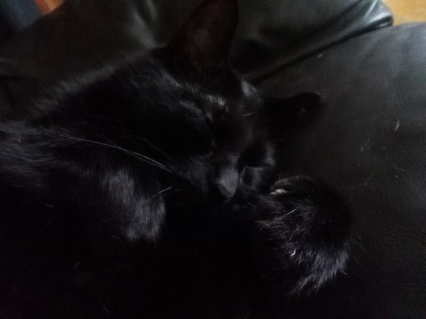 I’m sitting here looking at my inky black cat. Why in heaven do we think of black when the word “inky” comes along? Ink comes in so many different colours now. We’re not living in an age where we have to use a feather to write with. And a pot of ink … can you imagine? Having to do that? Our computer screens would be a mess!!