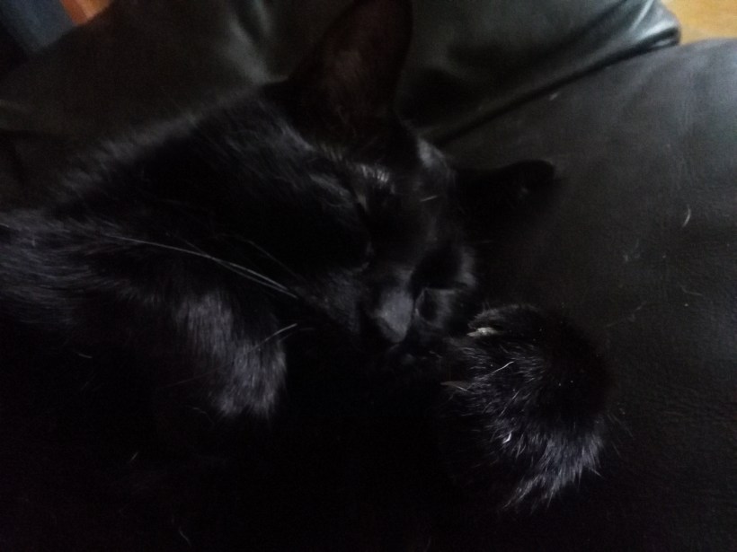 I’m sitting here looking at my inky black cat. Why in heaven do we think of black when the word “inky” comes along? Ink comes in so many different colours now. We’re not living in an age where we have to use a feather to write with. And a pot of ink … can you imagine? Having to do that? Our computer screens would be a mess!!