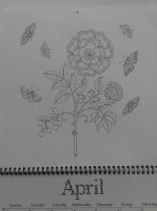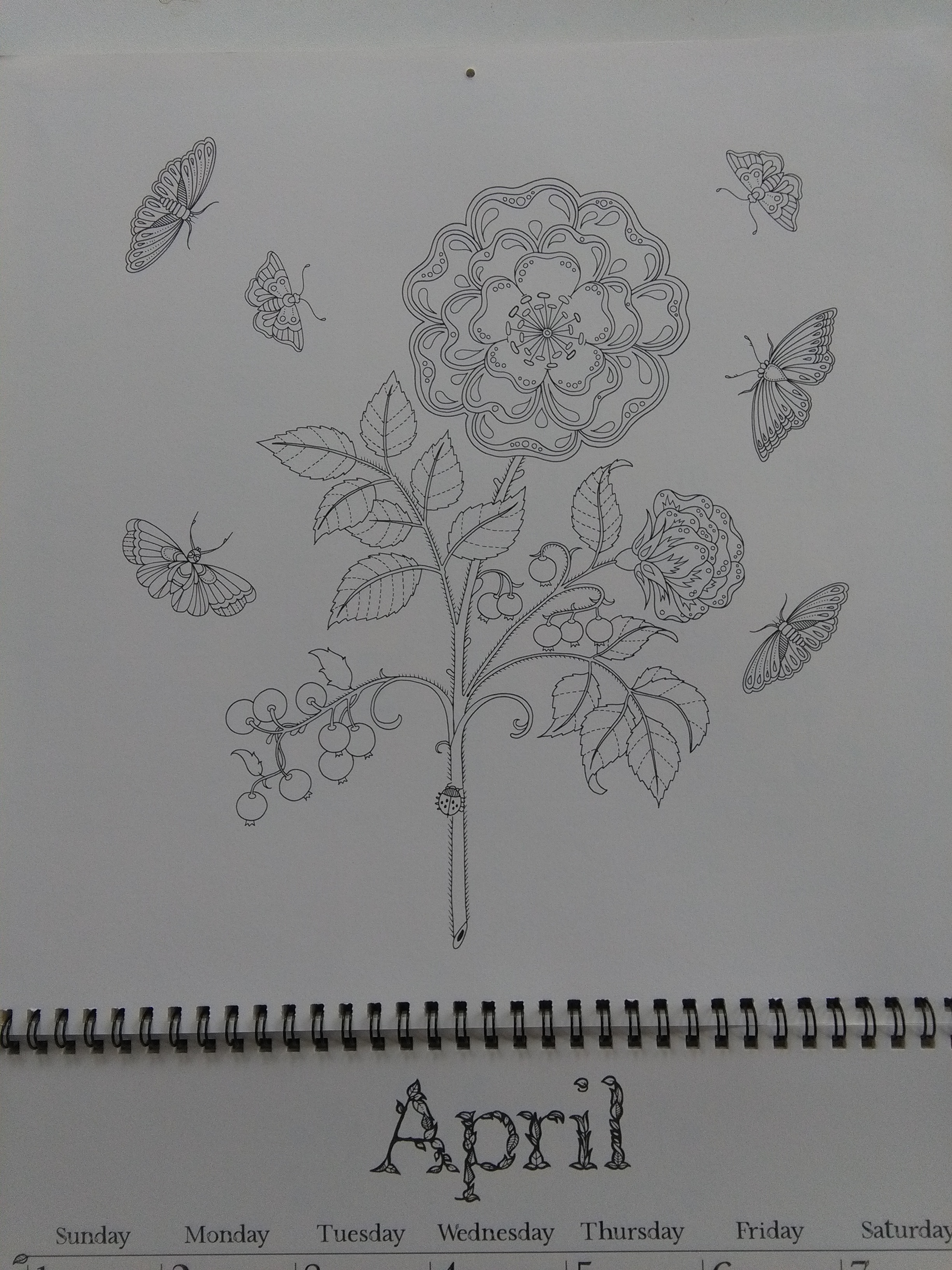 I managed once again to complete the month (of April) on my colouring calendar. This one was a little more sparse than previous ones, possibly to make up for May, which is going to be a challenge. Here is my April project: