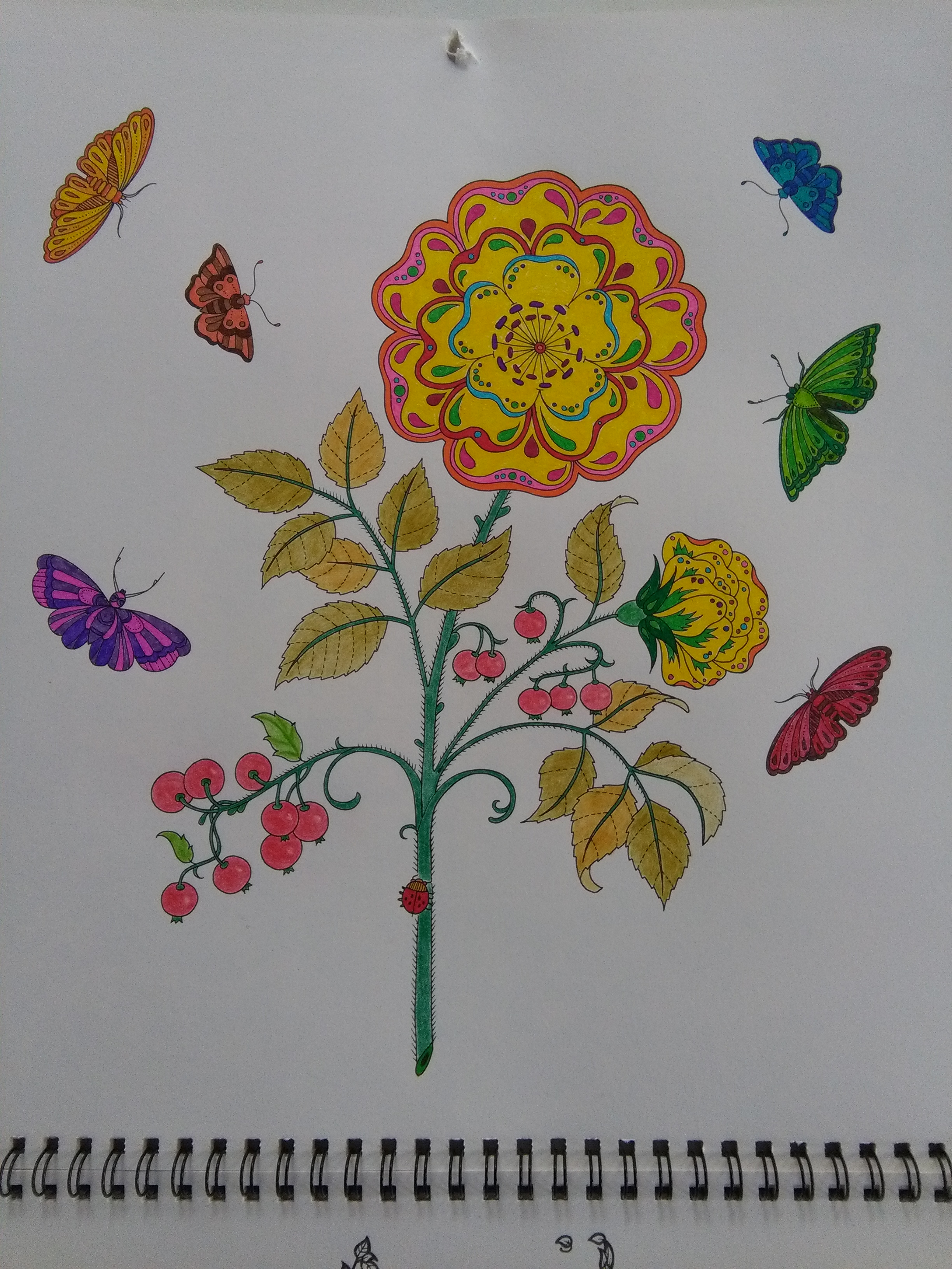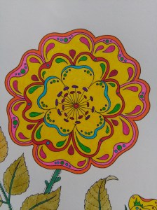 I coloured most of the big yellow flower at night – I was amazed at how much I’d missed when I looked at it in daylight!