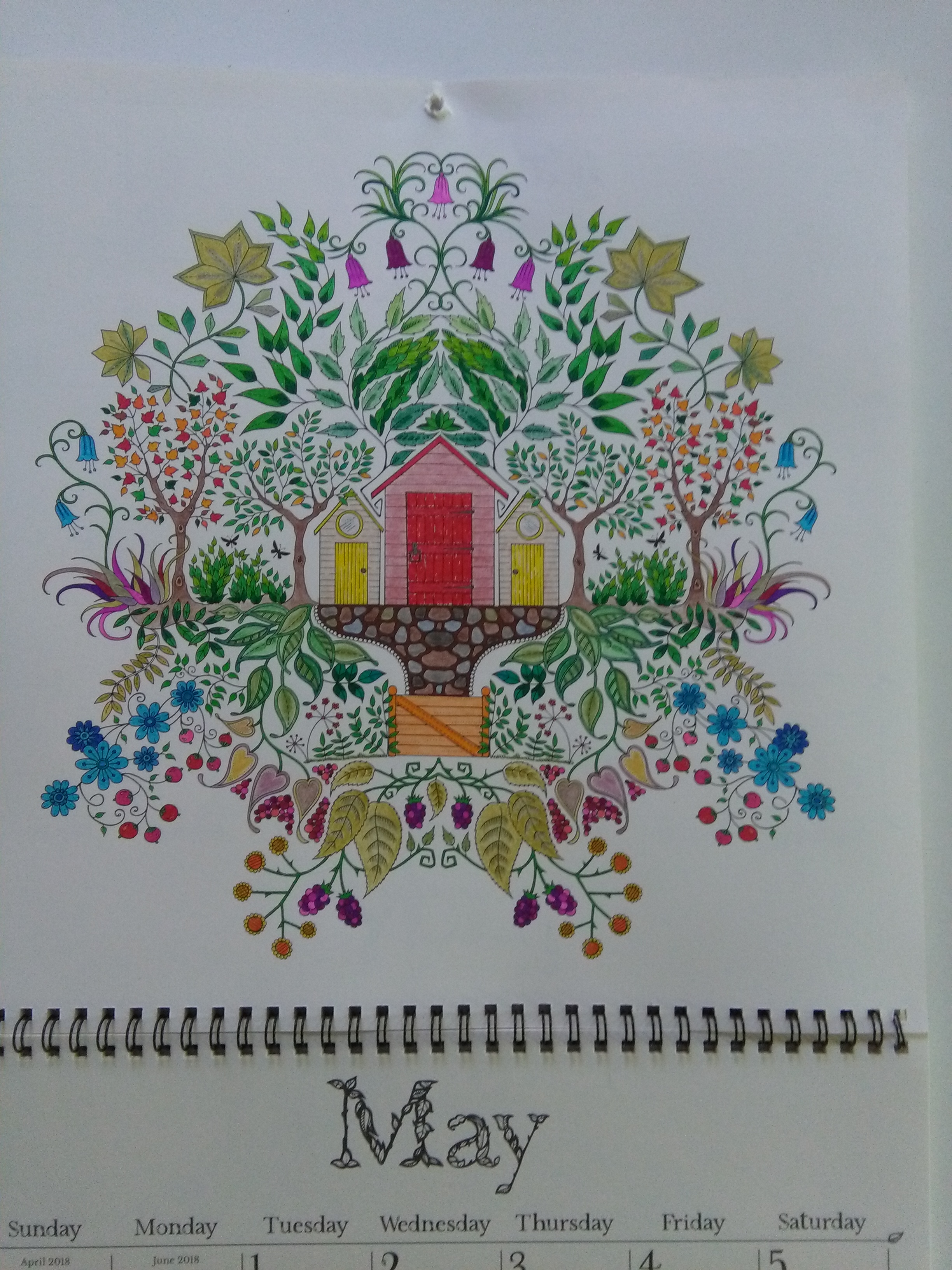 I had another successful month of escapism: I completed the May page of my colouring calendar. Most of the pages in this calendar are challenging, and this one was no exception.