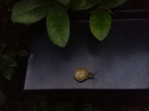 (Pictured: a snail slithering across the lid of my mailbox.)