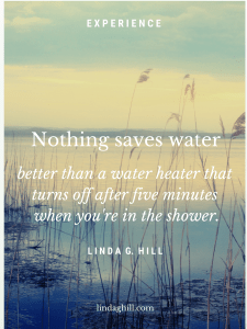 Nothing saves water better than a water heater that turns off after five minutes when you’re in the shower.