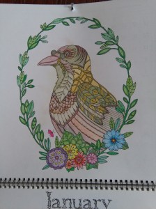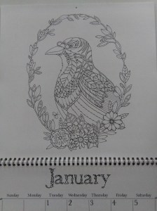 I like your January calendar page! Nice little details to color in, but not so many you get tired of the same thing. Fun bird, and pretty shadings. 🙂