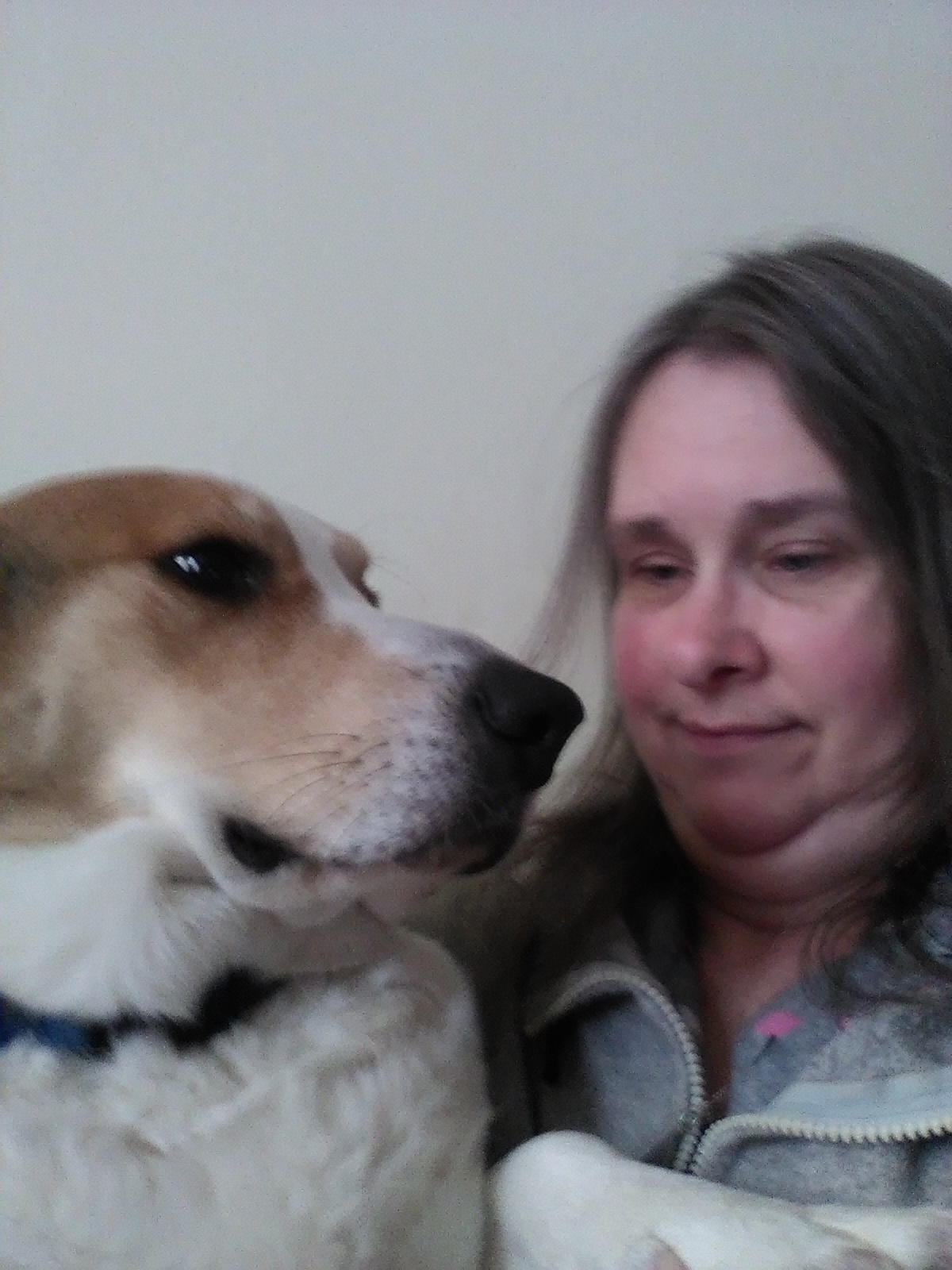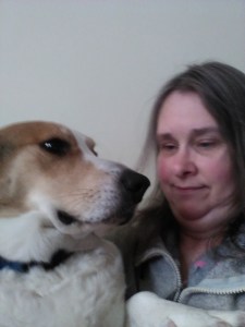 Me and my buddy Winston, taken five minutes ago. I really need to go on a celery diet.