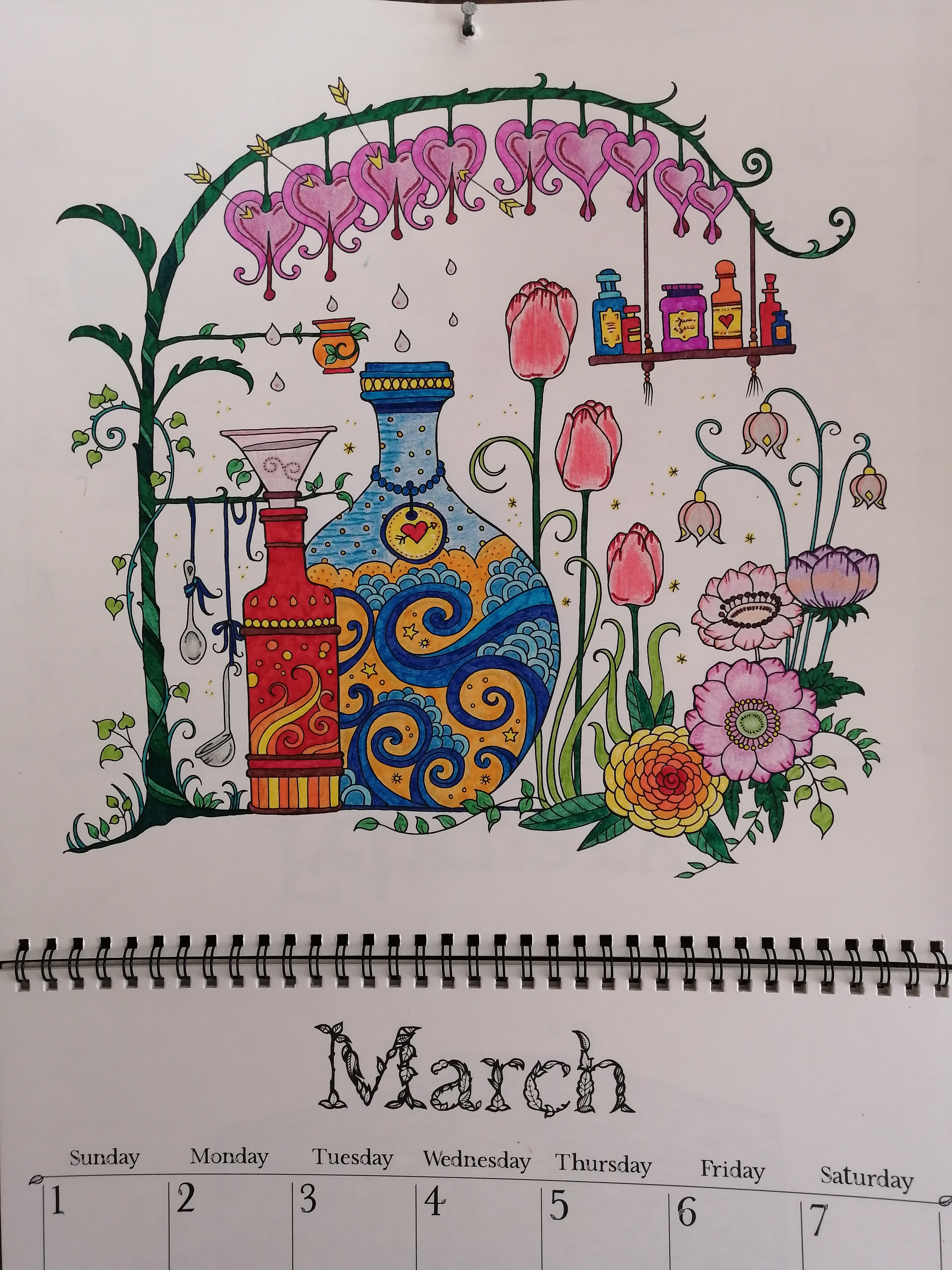 I did the same thing as last month, leaving the green bits ’til last. I think I’ve found my favourite way to colour!
