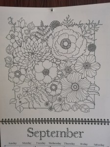 I finished my colouring my calendar page, early again this month. Here’s how it started with no colour: