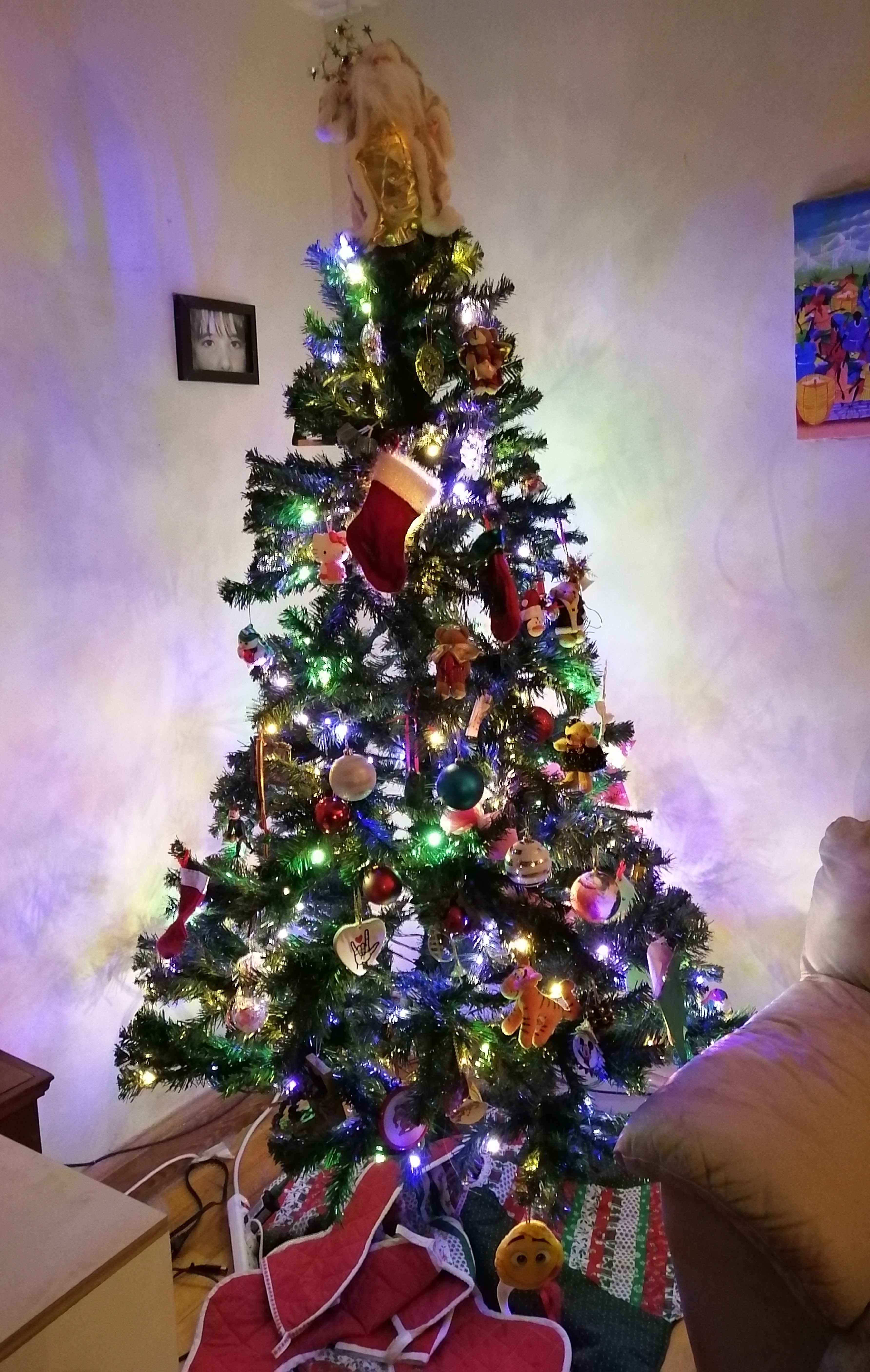 (Photo: a fully decorated tree. Alex did it all by himself this year.)