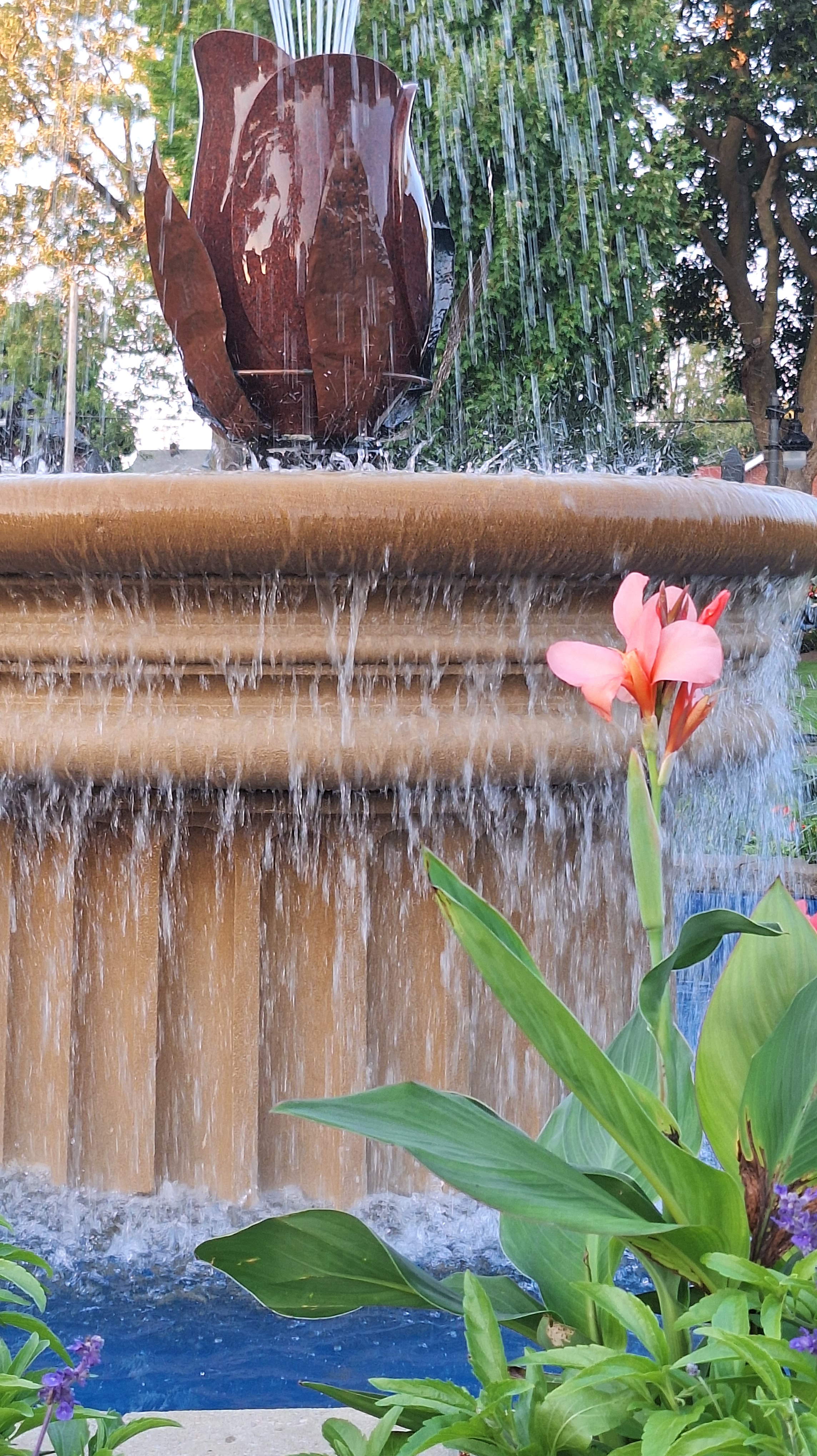 You’ve probably seen this fountain before, but it’s particularly pretty with its pink, purple, and red flowers this year. A video, too.