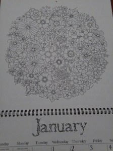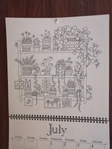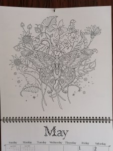 I finished my colouring my calendar page, just today! About half of it, in fact. I really slacked off for most of the month. Here it is with no colour: