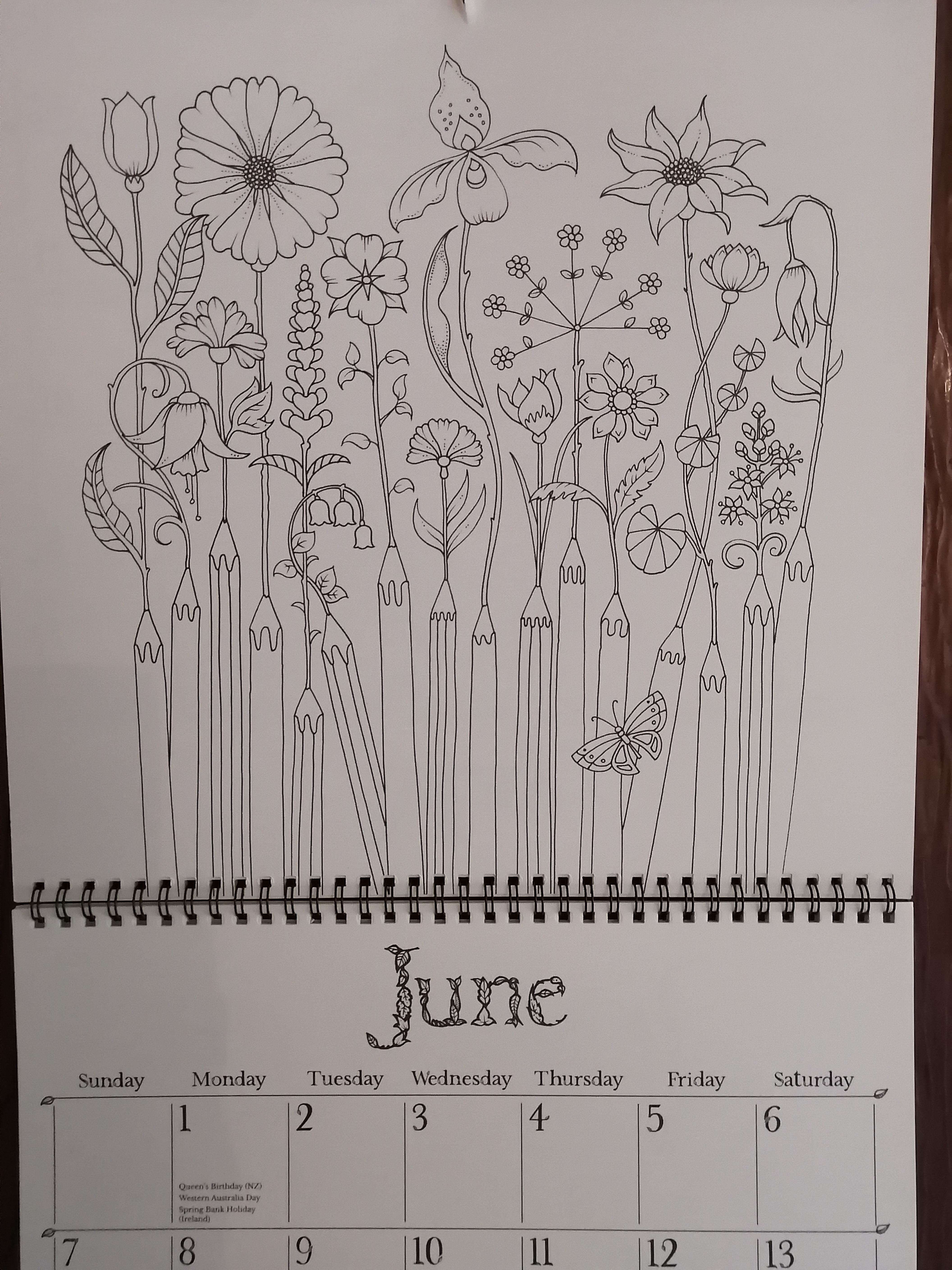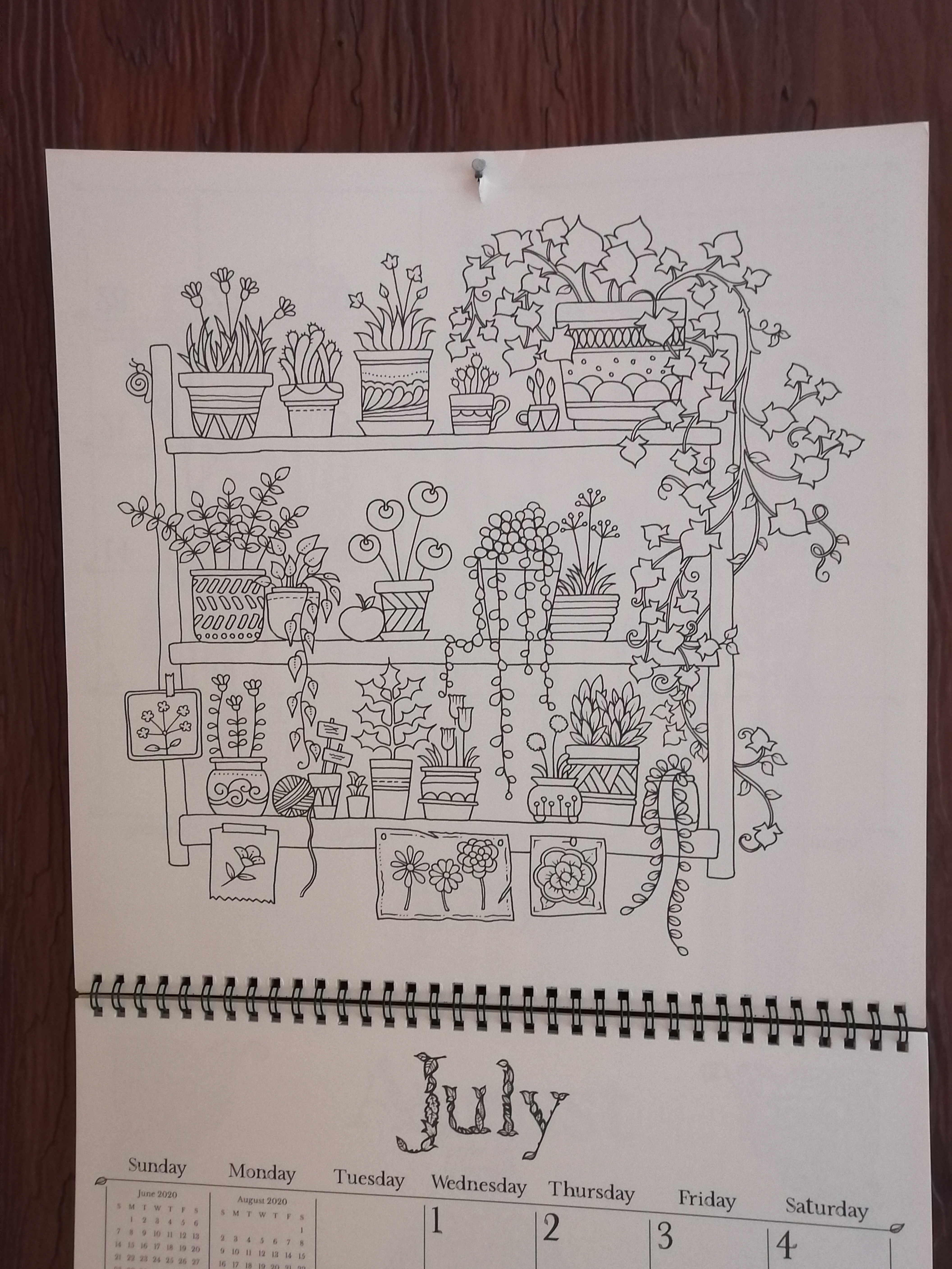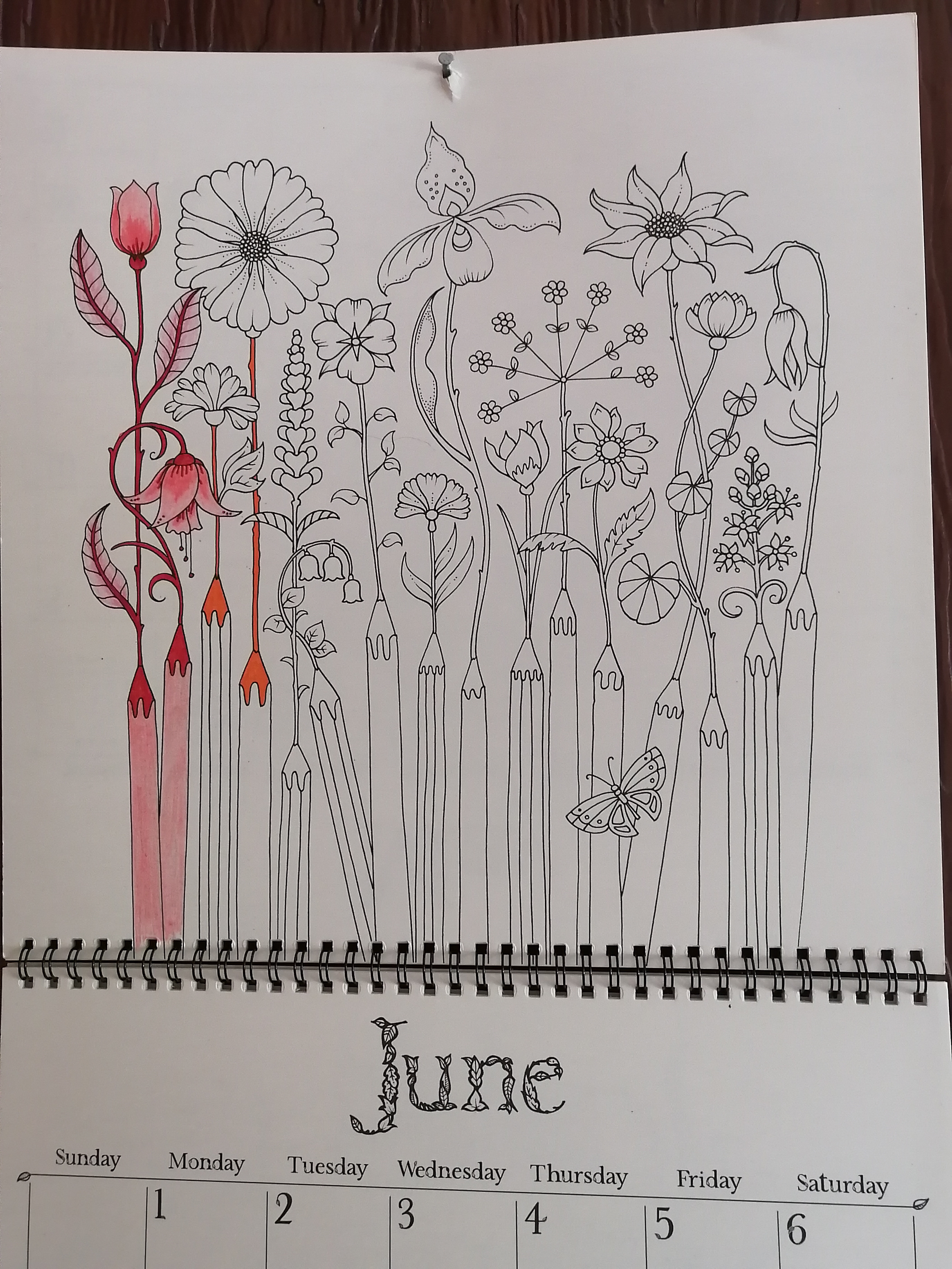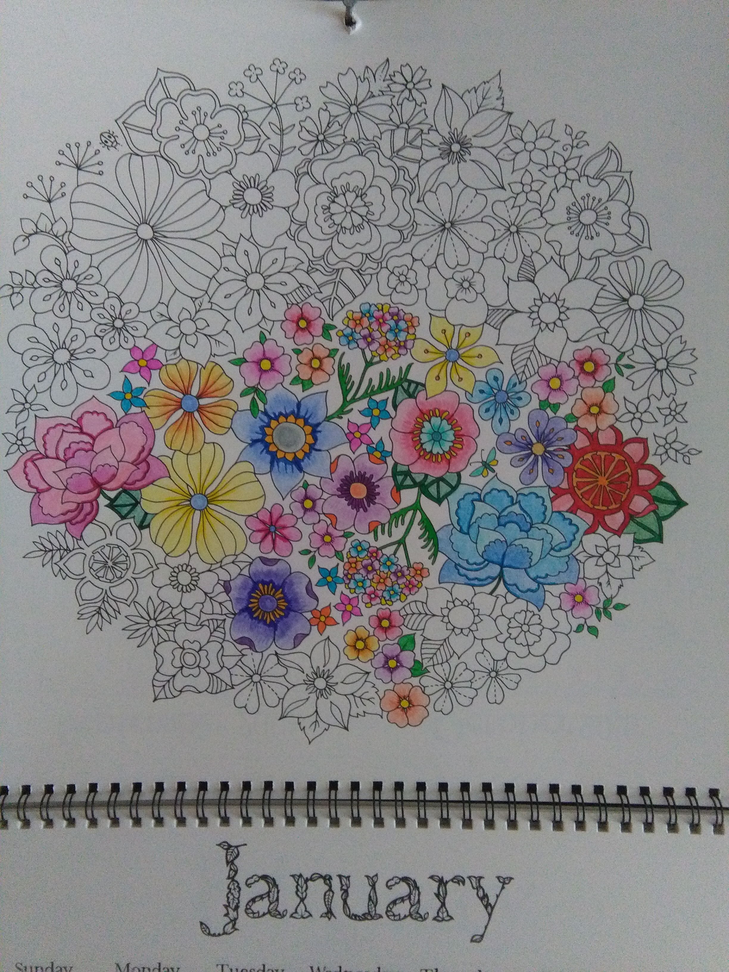 I finished my colouring my calendar page, just today! About half of it, in fact. I really slacked off for most of the month. Here it is with no colour: