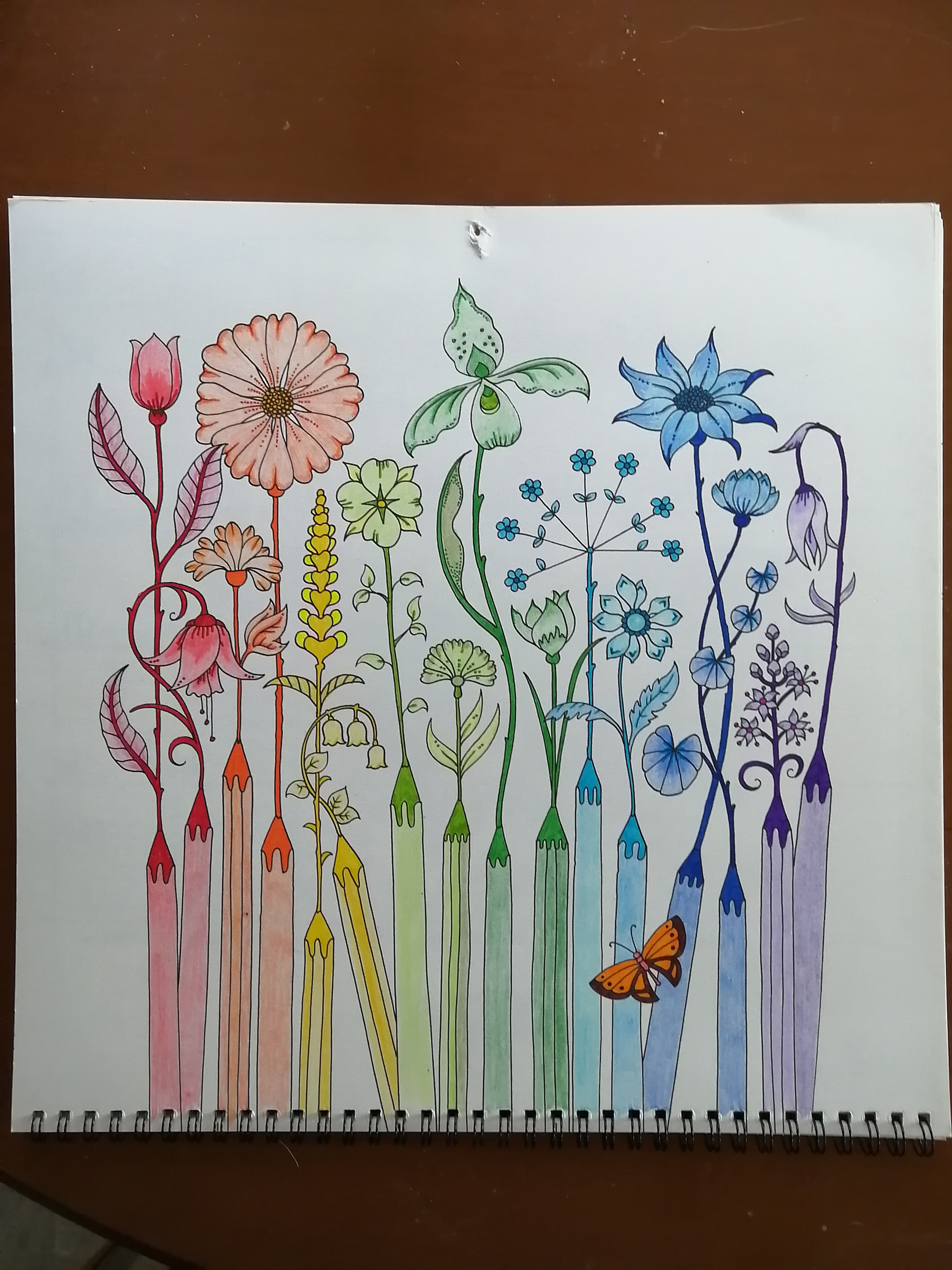 Not having time to really think about which colours to use, I just grabbed whatever. I like the overall chaos of it. Alex actually coloured the yellow flowers at the top left-hand corner, as well as half of the leaves on that plant and half of the snail before he got bored.