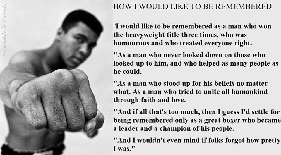 So today, Mohammad Ali. I found a meme on Facebook which included a quote: