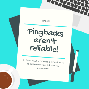 NOTE: Pingbacks only work from WordPress sites. If you’re self-hosted or are participating from another host, like Blogger, please leave a link to your post in the comments below.