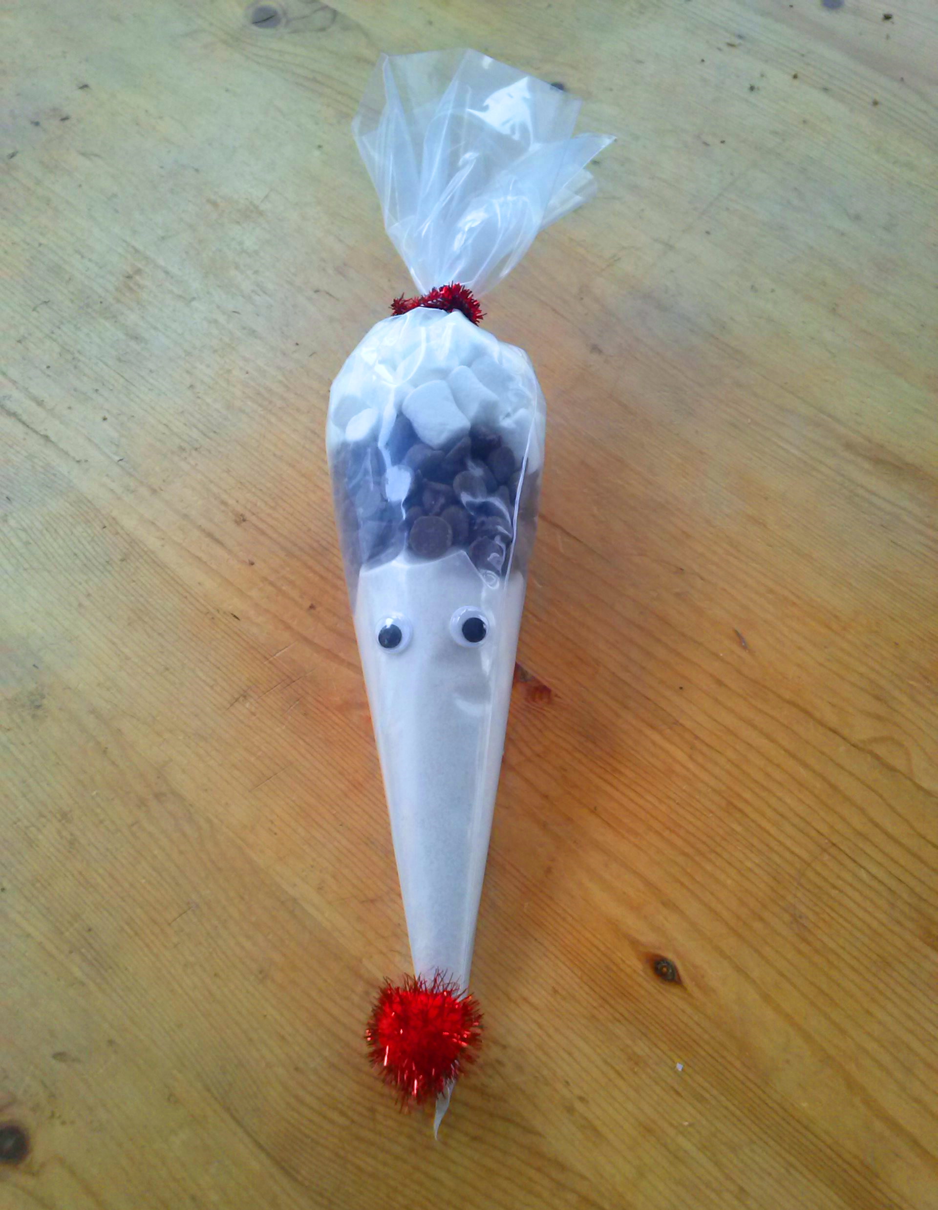 It’s white hot chocolate powder on the bottom, with a layer of dark chocolate drops in the middle, and mini marshmallows on top. Isn’t it cute?