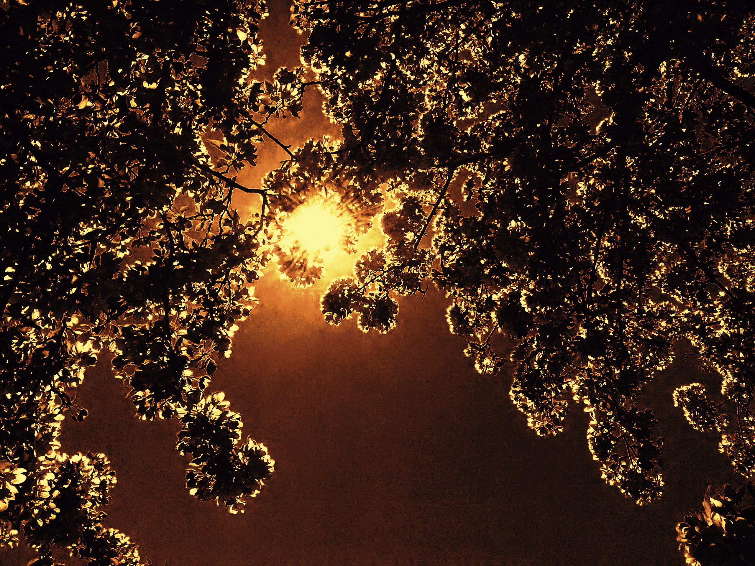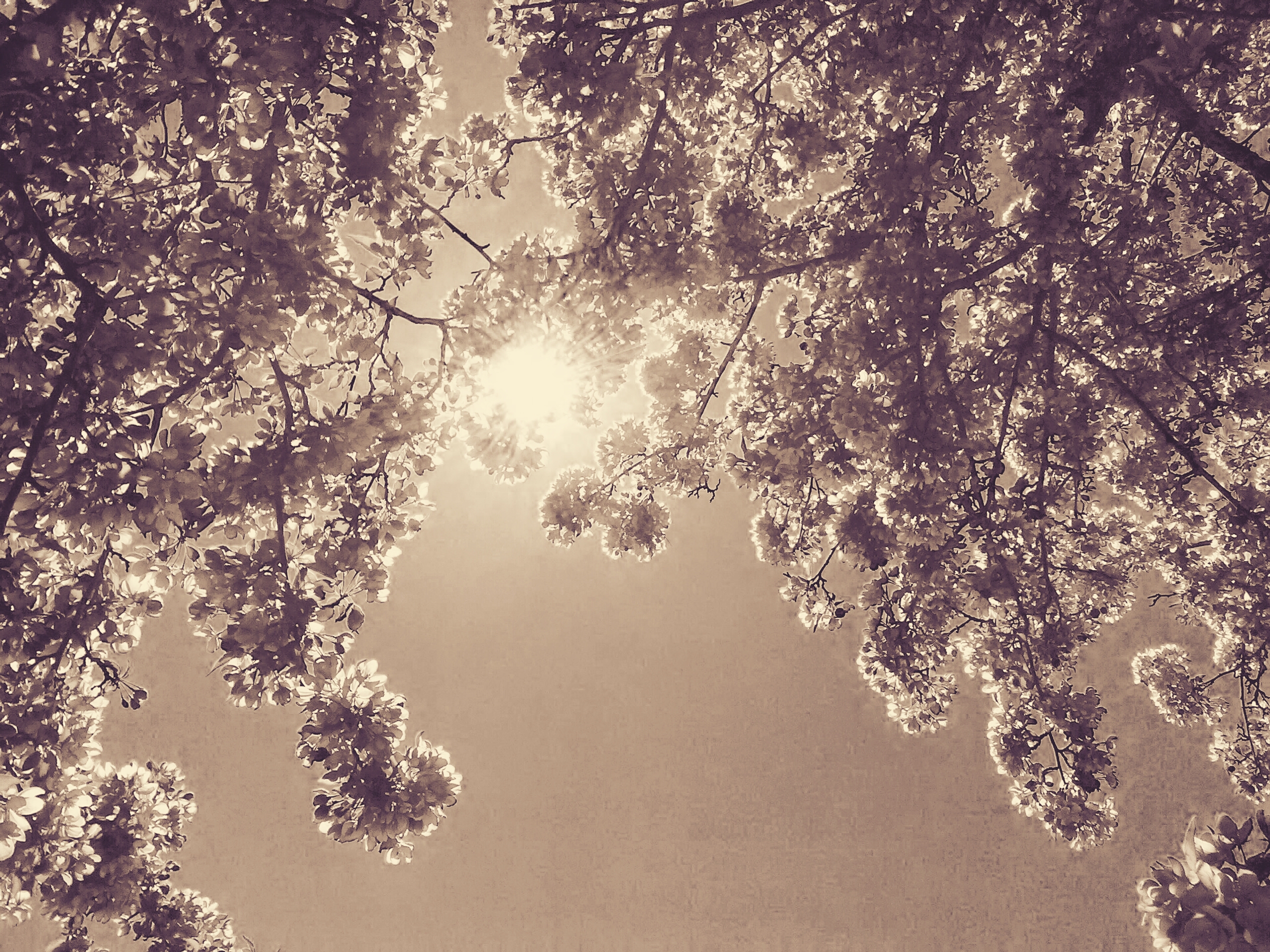 In response to K’lee and Dale’s Cosmic Photo Challenge prompt this week, which was shadows and silhouettes, I decided to use a picture I took in May. I was standing under a cherry tree and for some reason or another, took a picture of the sun through the branches.