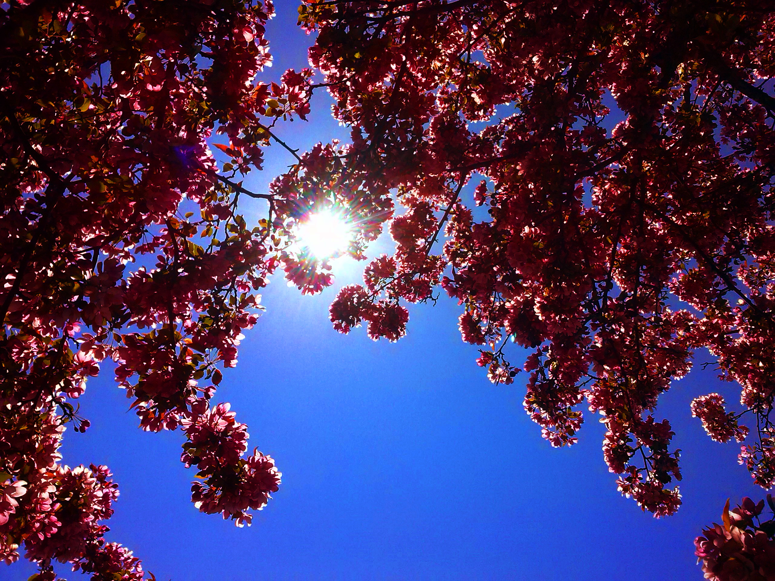 And finally, here’s what I ended up with when I played around with the original. I was trying to bring out the prism of the sun’s rays. It certainly shows off the actual brilliance of the pink blossoms: