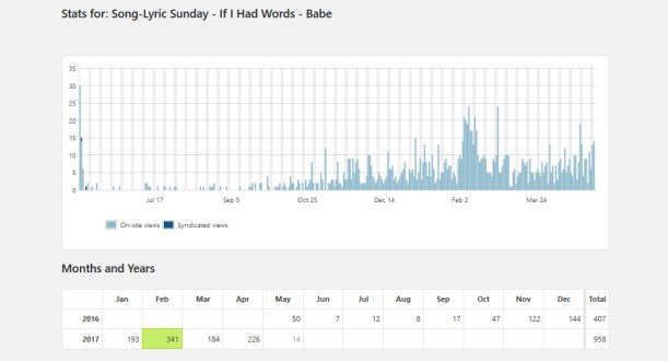 Of all the posts I’ve written that might have seen a lot of traffic, I didn’t suspect Song-Lyric Sunday – If I Had Words – Babe would be the one. But for some strange reason, it is.